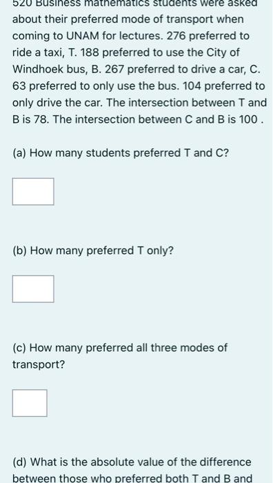 Solved 520 Business Mathematics Students Were Asked About Chegg Com